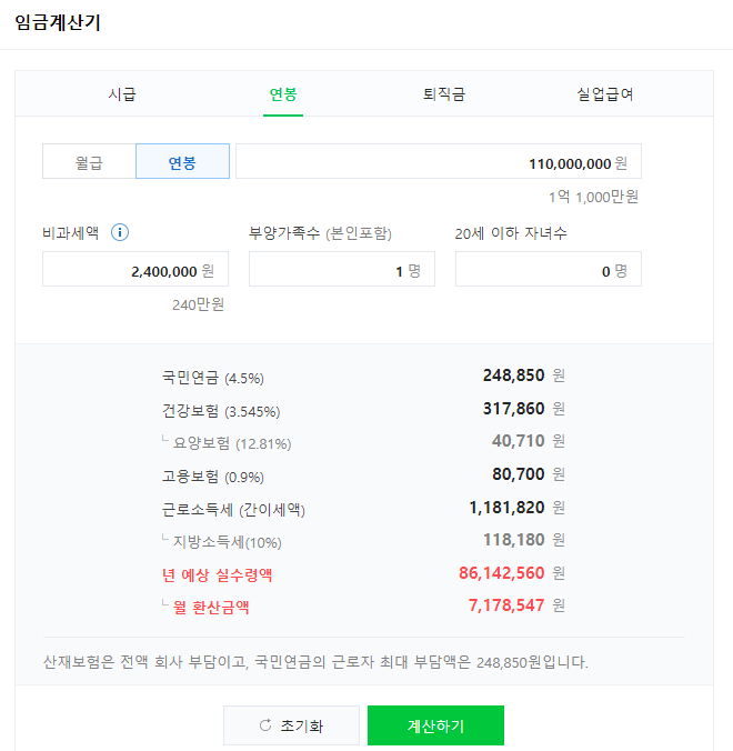 - 과장급 연봉 : 11000만원 (세전) / 8614만원 (세후)