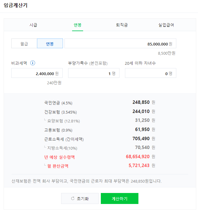 아래 포스팅을 참고하시면 세후 연봉을 어떻게 산출하는지 구체적으로 이해하실 수 있으실 겁니다.