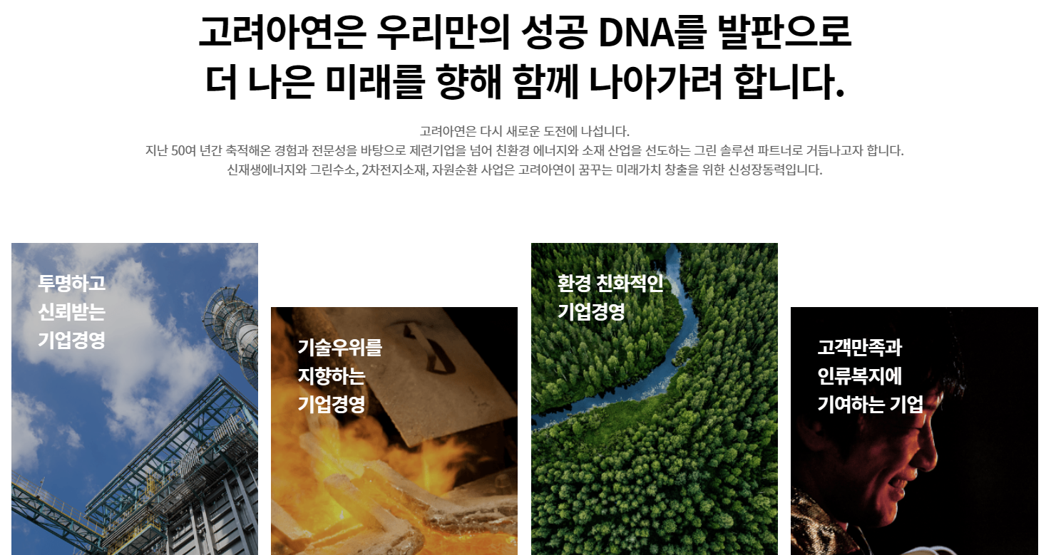 - 신소재 : 고려아연은 제련 기술을 기반으로 신소재 사업에도 적극적으로 진출하고 있습니다. 특히, 전기차 배터리의 핵심 소재인 동박 생산을 위해 자회사 KZAM을 설립하고, 대규모 투자를 통해 생산 능력을 확대하고 있습니다. 이를 통해 미래 성장 동력을 확보하고, 사업 포트폴리오를 다각화하고자 합니다.