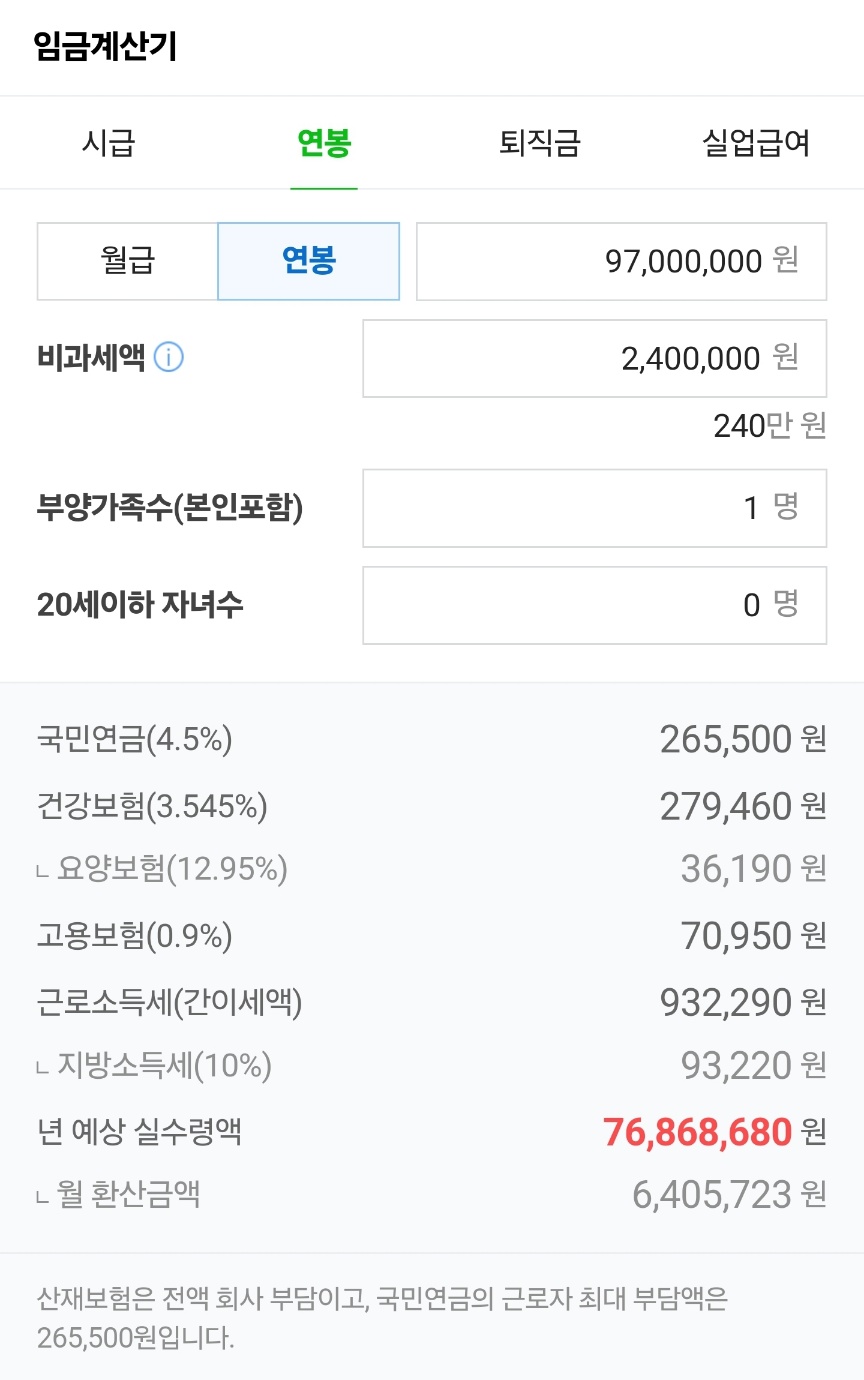 세후 연봉을 궁금해하시는 분들이 많습니다.