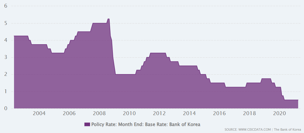 자세한 내용은 다음에 다루기로 하고 오늘은 우선 현재 한국의 기준금리 현황과 과거 20년치의 데이터를 살펴보겠습니다.