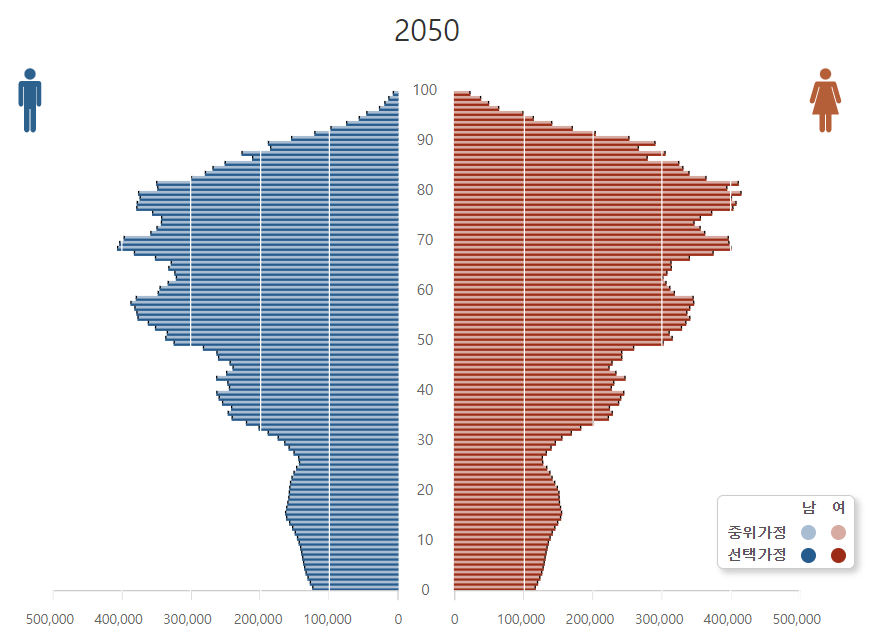 2050년 이후에는 대한민국 인구의 10명 중 4명은 노인이 되어 살아가게 됩니다.